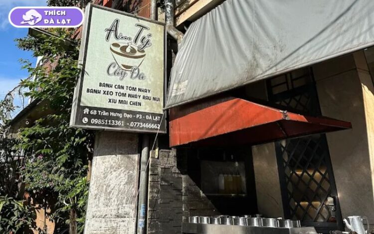 Quán Bánh Căn A Tý nằm ngay mặt tiền đường Trần Hưng Đạo. Đây là một trong những tuyến đường trung tâm, thuận tiện cho du khách di chuyển. Dù không sở hữu không gian quá lớn, quán bánh căn ngon ở Đà Lạt này vẫn tạo được ấn tượng nhờ cách bố trí gọn gàng, ngăn nắp và phong cách phục vụ thân thiện.