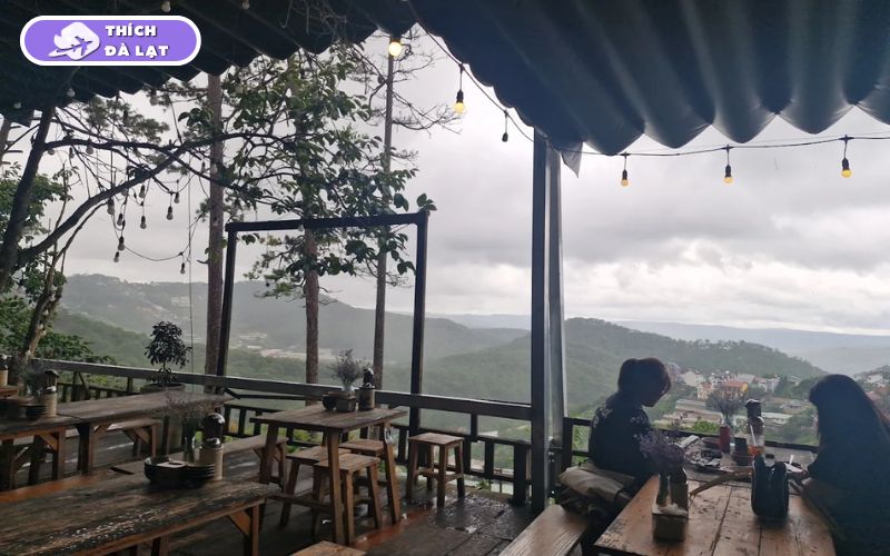 Điểm đặc biệt nhất chính là tầm nhìn. Từ quán, bạn có thể phóng tầm mắt ra xa để thấy rừng thông trải dài và sương bay lững lờ. Đây là một background “sống ảo” cực chill cho những ai yêu thích vẻ đẹp mộc mạc của Đà Lạt. Với sức chứa khoảng 50 khách, quán phù hợp cho cả nhóm bạn, gia đình hoặc cặp đôi muốn tận hưởng bữa sáng trong không gian trong lành.