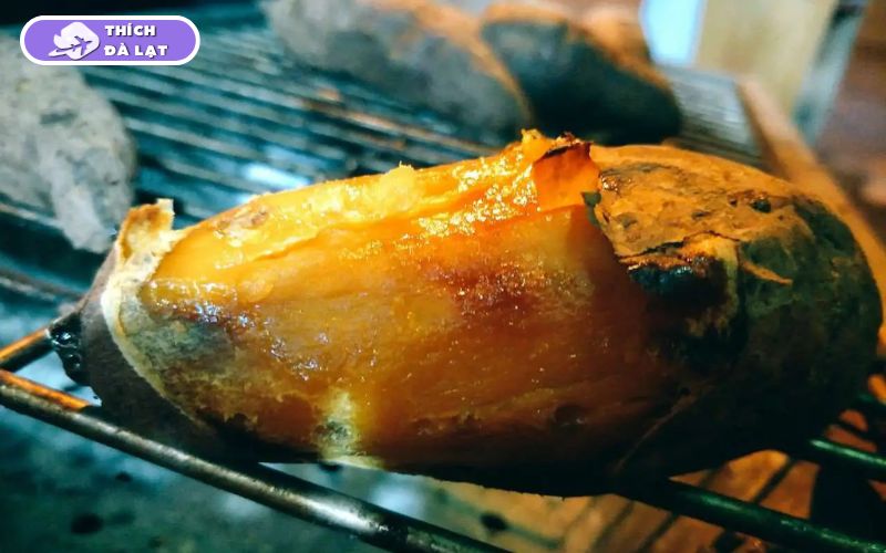 Nếu muốn thưởng thức khoai nướng Đà Lạt ngon, đừng bỏ qua quán Củ Khoai Lang Nướng Kem. Khoai tại quán được nướng vừa chín tới, giữ độ mềm, thơm, có thể kết hợp phô mai, caramel hoặc kem tùy khẩu vị.