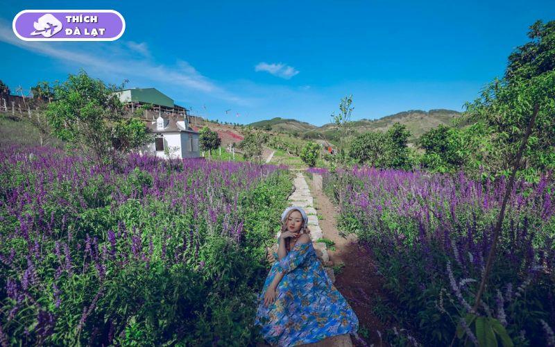 Bạn có thể tản bộ trên các lối đi nhỏ giữa vườn hoa, cảm nhận hương thơm dịu nhẹ và tận hưởng không khí mát mẻ của vùng cao nguyên. Khoảnh khắc này mang lại cảm giác thư thái và giúp du khách tạm rời xa sự ồn ào của thành phố.